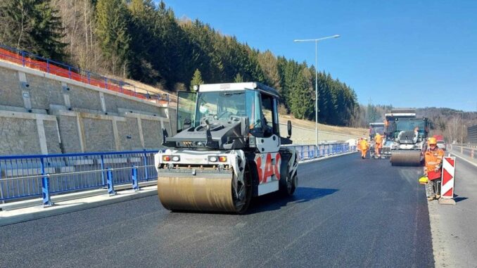 Pracovníci položili asfaltové vrstvy silnici I/57 a ještě je čeká nástřik vodorovného dopravního značení. „Dnes a zítra ještě budeme pokládat asfaltové vrstvy na silnici I/69 u benzínky Shell. Nejpozději v sobotu 12. 4. odstraníme semafory a řidiči budou opět projíždět bez omezení. Dokončení stavby plánujeme letos na podzim,“ informovala mluvčí zlínské správy ŘSD ČR Lucie Trubelíková.