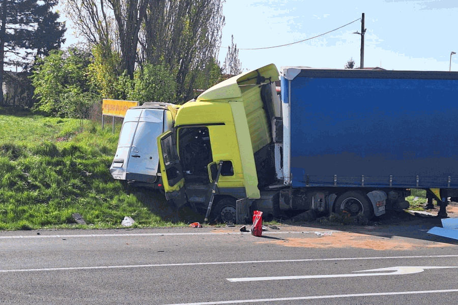 BŘECLAV – V pondělí krátce po sedmé hodině ráno došlo na křižovatce na silnici I/55 poblíž obce Hrušky k tragické dopravní nehodě dodávky a kamionu. Hasiči museli vyprostit spolujezdce z dodávky.