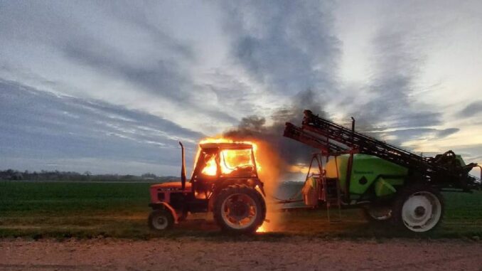 Večer v plamenech: Traktor na poli u Hubenic shořel kvůli závadě