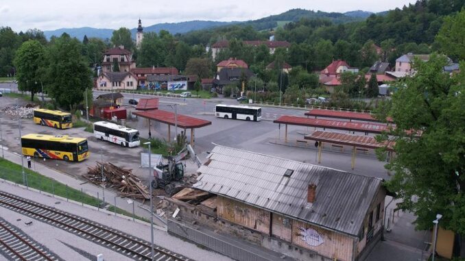 ROŽNOV POD RADHOŠTĚM – 100 tatrovek suti a stavebního materiálu odvezou nákladní auta z blízkosti vlakového nádraží, kde minulý týden šly k zemi čtyři budovy. Odstranění umožní revitalizaci prostoru, cílem je vybudovat moderní a příjemný prostor jak pro občany, tak pro cestující.