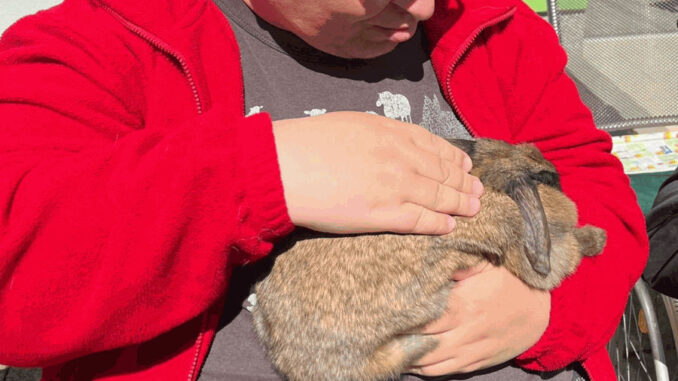 Letos na výlet vyrazil oslík Vilík, poník Valda a oslička Jana. Na pomazlení ošetřovatelky klientům přivezli z Babiččina dvorečku dospělé králíky i s mláďaty a kuřátka mladší než měsíc. Bylo to příjemné setkání pro všechny na sluníčku před budovou domu.