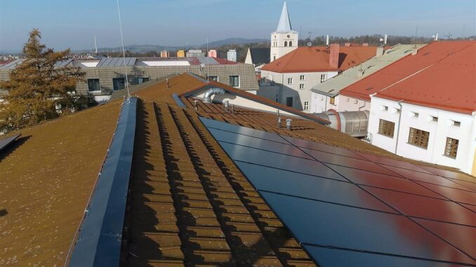 VALAŠSKÉ MEZIŘÍČÍ – Radnice nechala umístit celkem 85 fotovoltaických panelů na střechu budovy městského úřadu v ulici Soudní a ubytovny u atletického stadionu. Počítá se s úsporou téměř třetiny nákladů na elektrickou energii a ohřev teplé vody.