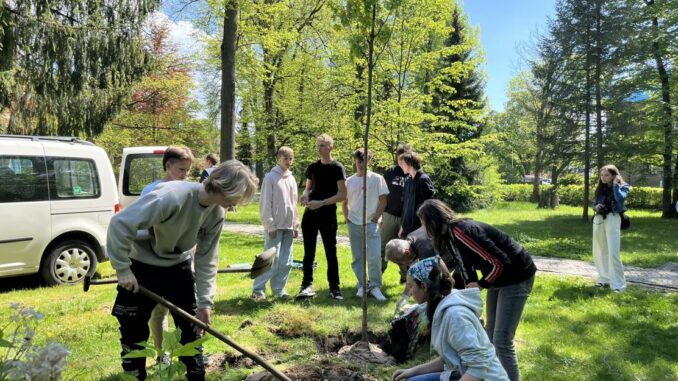 Rožnov pod Radhoštěm – Tři magnolie, tři okrasné jabloně a dva okrasné javory vysadili koncem dubna v Rožnově žáci ZŠ Videčská, ZŠ Sedmikráska, studenti Rožnovské střední a Spolek rožnovských žen v městském parku. Osm památečních stromů je připomínkou obětí osvobozovacích bojů před osmdesáti lety v Rožnově pod Radhoštěm.