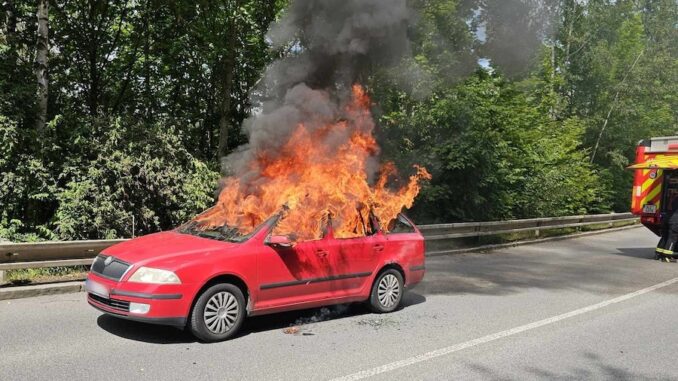 LIBEREC – Požár osobního auta Škoda Octavia v pondělí 14. července odpoledne zkomplikoval dopravu v libereckém Růžodolu. Krátce po 13. hodině vyjížděli na místo profesionální hasiči z centrální stanice, aby zasáhli proti plamenům šlehajícím z vozidla na rušné silnici. Během zásahu byla komunikace uzavřena, poté se provoz obnovil alespoň v jednom jízdním pruhu.