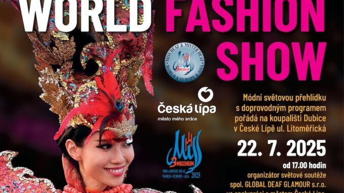 ČESKÁ LÍPA – Reprezentují 20 zemí světa včetně ČR a v sobotu 19. července budou společně v Praze soutěžit o titul Miss & Mister Deaf World & Europe & Asia, tedy o titul nejkrásnější neslyšící dívky a chlapce na světě. Všichni účastníci letošního finále se pak vydají na cestu se svojí World Fashion Show. Jedna ze zastávek této jedinečné světové show bude i v České Lípě, a to v úterý 22. července od 17:00 na koupališti v Dubici.