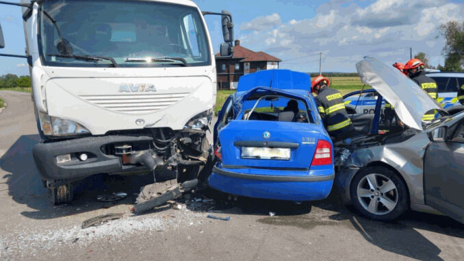 BŘECLAV – Ve středu kolem půl jedenácté dopoledne hasiči vyráželi k dopravní nehodě tří aut na silnici I/55 na křižovatce u Moravské Nové Vsi na Břeclavsku. Srazily se tam dvě osobní a jedno nákladní auto.