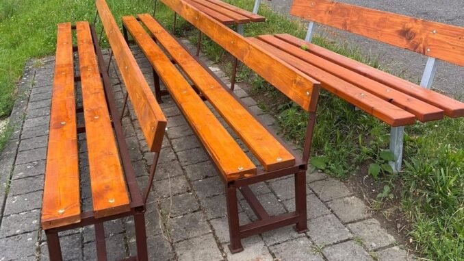 Fanoušci se dočkali nových laviček u fotbalového hřiště v Těšnovicích