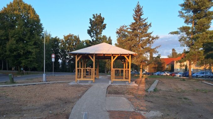 ROKYCANY – Nehostinná travnatá plocha před Rokycanskou nemocnicí se v těchto týdnech mění v malý park. Lavičky, nové cesty, zeleň a dřevěný altán mají vytvořit příjemné místo, kde si pacienti i jejich návštěvy odpočinou. Dominantou prostoru se stane socha Žena s hrozny, která se po opravě přesune na důstojnější místo.