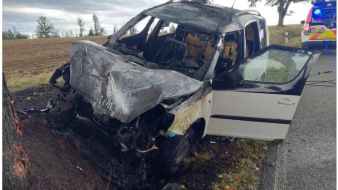 PELHŘIMOVSKO – Vážná dopravní nehoda se stala v pátek odpoledne mezi obcemi Jiřice a Lhotka na Pelhřimovsku. Osobní auto narazilo do stromu a začalo hořet. Na místě zasahovaly všechny složky záchranného systému.