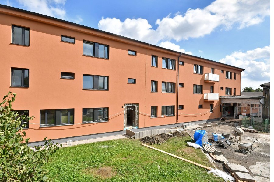 Jedním z hlavních úkolů rekonstrukce bylo snížení energetické náročnosti objektu. Zateplení proto dostal celý cihlový obvodový plášť i se střechou. Stará dřevěná netěsnící okna nahradila plastová s izolačními trojskly. „Díky těmto úpravám se budova dostala na úplně jinou úroveň. Uvnitř bude stabilnější teplota, náklady na vytápění klesnou a obyvatelé získají mnohem lepší komfort,“ upřesnila Kaspřáková. Přestavba první budovy vyjde na 39 milionů korun.