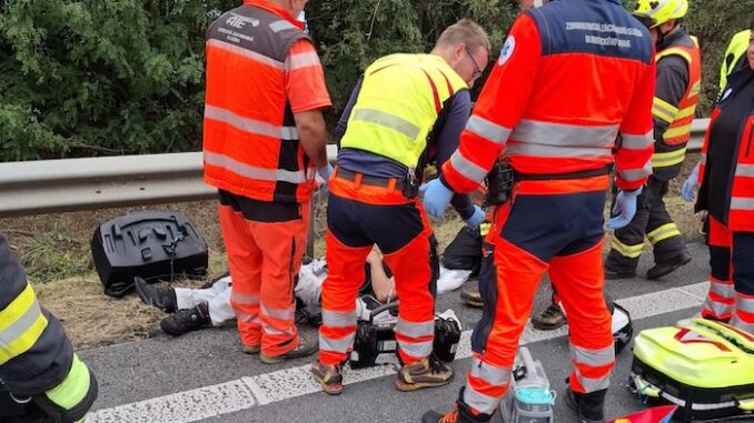 Další nehoda zaměstnala záchranáře ve čtvrtek před polednem. Na dálnici D35 u Mohelnice se srazil motorkář s osobním autem. „Poskytli jsme předlékařskou pomoc a zraněného muže jsme předali posádce vrtulníku letecké záchranné služby,“ objasnila mluvčí hasičů Lucie Balážová. Podle mluvčí Zdravotnické záchranné služby Olomouckého kraje Lucie Mikiskové se jednalo o polského motorkáře středního věku, který byl krátce po nehodě při vědomí a se záchranáři komunikoval.