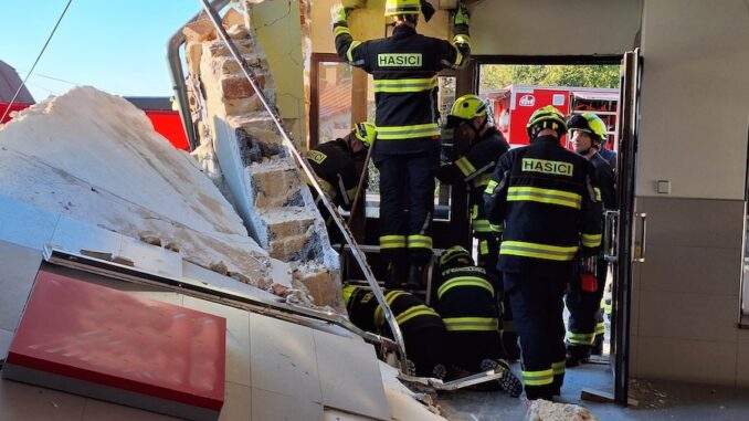 Na místo byly k události povolány i technické kontejnery ze stanice HZS Liberec – kontejner pro dopravní nehody, dále kontejner určený pro stabilizaci s výdřevou, potřebným materiálem a nářadím, neboť nárazem auta došlo ke zboření části stěny objektu. „Hasiči objekt stabilizovali tak, aby bylo možné vozidlo vyprostit ze sutin. Na místo se kromě zmiňovaných libereckých hasičů dostavili i kolegové ze stanic HZS v Jilemnici, v Semilech a z Královéhradeckého kraje i profesionální jednotka z Vrchlabí v rámci mezikrajské spolupráce,“ uvedl Hasičský záchranný sbor Libereckého kraje na svém facebookovém profilu.