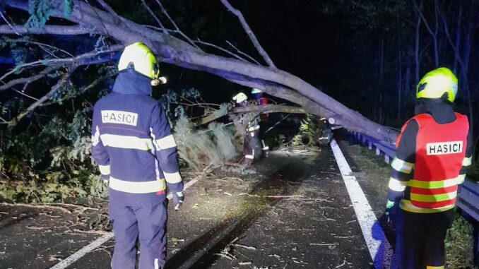 Profesionální a dobrovolné hasiče v souvislosti s počasím zaměstnaly zejména technické zásahy. „Statistika říká, že v noci na čtvrtek v průběhu dvanácti hodin, tedy mezi středeční devatenáctou hodinou večerní a čtvrteční sedmou hodinou ranní krajští hasiči řešili celkem více než 50 událostí,“ uvedla tisková mluvčí hasičů Jaroslava Benešová.