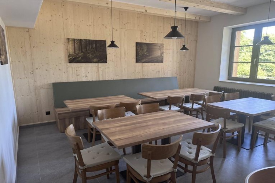 Zrekonstruovaný objekt nabízí restauraci laděnou do přírodního stylu s venkovní terasou, společenský sál i turistické ubytování pro školní výpravy a pěší návštěvníky. V horním patře nechybí apartmán s vlastním sociálním zařízením a kuchyňkou. Přestavba začala v létě 2024 a po roce práce vyšla město Domažlice na 20 milionů korun. Chata využívá moderní technologie, vytápění zajišťuje tepelné čerpadlo a dřevo.