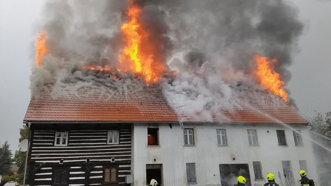ČESKOLIPSKO – Silný kouř, plameny šlehající ze střechy a desítky hasičů v akci. Tak to vypadalo v Kravařích na Českolipsku, kde vzplál rodinný dům v části obce Janovice. Požár, který zasáhl střechu a půdní prostory, si vyžádal zásah devíti jednotek hasičů a vyhlášení druhého stupně požárního poplachu.