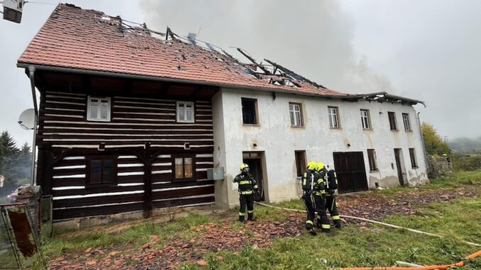 K požáru vyjížděli profesionální a dobrovolní hasiči ve středu 8. října po desáté hodině dopoledne. „Jak zjistili zasahující hasiči po příjezdu na místo události a provedení průzkumu, požárem byla zasažena střecha a půdní prostory domu – 2. nadzemní podlaží,“ informovala tisková mluvčí hasičů Jaroslava Benešová.