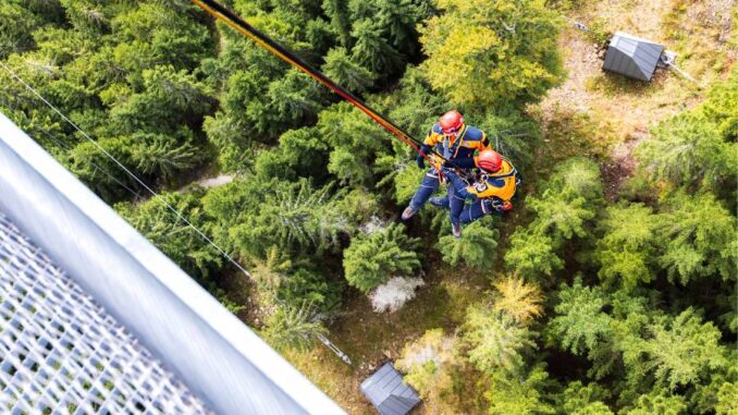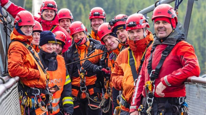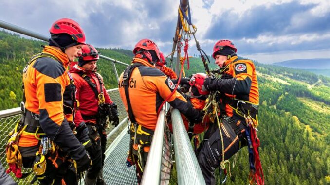 PARDUBICKÝ KRAJ – Na unikátním visutém mostě Sky Bridge 721 v Dolní Moravě se v minulých dnech uskutečnil speciální výcvik hasičů-lezců z celého Pardubického kraje. Zachraňovali osobu přímo z konstrukce mostu ve výšce devadesát metrů nad údolím.