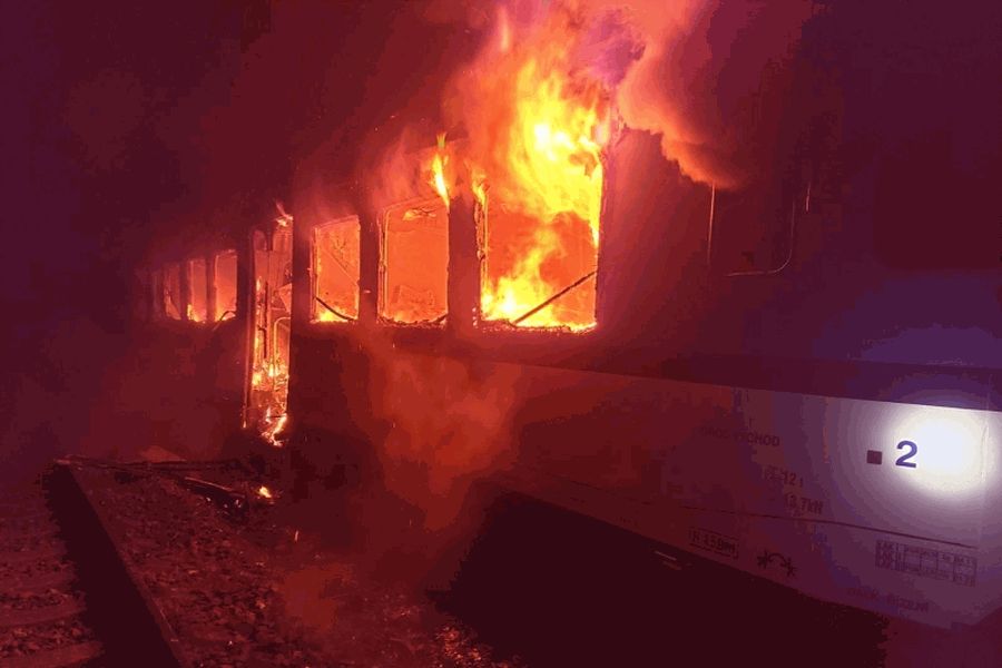 Operační středisko hasičů přijalo v pondělí informaci o požáru vlaku krátce po 5. hodině ráno. Vyslané jednotky měly komplikovaný příjezd k místu události. Plameny zasáhly hnací vůz a rozšířily se i na okolní porost. Hasiči proti plamenům nasadili celkem tři vodní proudy a pro efektivní likvidaci požáru hnacího vozu byla použita i pěna. Požár byl zlikvidován přibližně za dvě a půl hodiny. Díky zásahu hasičů se podařilo uchránit další dva vagóny vlakové soupravy. Provoz na trati byl po celou dobu hasebních prací zastaven. Hasičům se podařilo uchránit dva vagóny soupravy. Událost se obešla bez zranění.