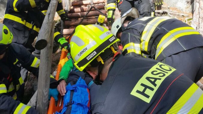 JABLONECKO – Slunečná neděle vylákala do přírody řadu turistů. Ne všem ale výlet skončil podle plánu. Hasiči z Turnova, Semil a Koberov zasahovali na Suchých skalách u Železného Brodu, kde museli z obtížně přístupného terénu zachraňovat zraněného muže. Pomocí lanové techniky a speciálních nosítek jej dostali bezpečně nahoru k cestě, odkud byl předán do péče záchranářů.