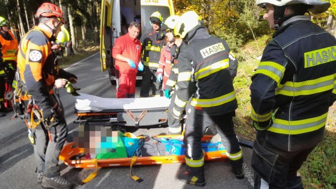 Na místo vyjeli profesionální hasiči z Turnova, dobrovolní hasiči z obce Koberovy a lezecká skupina ze semilské stanice. „Zraněnému zasahující na místě poskytli první předlékařskou pomoc a následně jej umístili do nosítek, zabezpečili a pomocí lanových technik dostali prudkým terénem bezpečně v nosítkách nahoru na cestu,“ popsala záchrannou akci na Železnobrodsku tisková mluvčí hasičů Jaroslava Benešová.
