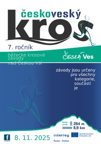 Co: Běžecký krosový závod nad Českou Vsí v Jeseníkách.Registrace na závod začne od 8.00 hodin na místě, můžete se registrovat i online. Konec registrací bude nejpozději 15 minut před startem každé kategorie. Před měřenými závody proběhne závod dětí od narození do ročníku 2020, jeho start bude v 9:00 hodin.