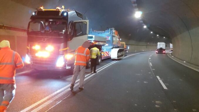 Střet osobního auta s nákladním zablokoval dnes po půl páté ráno tunel Hřebeč. „Řidič auta Citroen se střetl s nákladním vozidlem, které vezlo nadměrný náklad. Řidič osobního auta utrpěl při nehodě zranění. Policisté na místě u obou řidičů vyloučili alkohol provedenými dechovými zkouškami. Z důvodu dopravní nehody byl tunel obousměrně uzavřen a provoz byl plně obnoven před sedmou hodinou ranní,“ uvedl mluvčí policie Tomáš Dub. Dle slov mluvčího záchranky Josefa Strašíka jednu osobu ošetřili záchranáři na místě a do nemocnice nikoho neodvezli.
