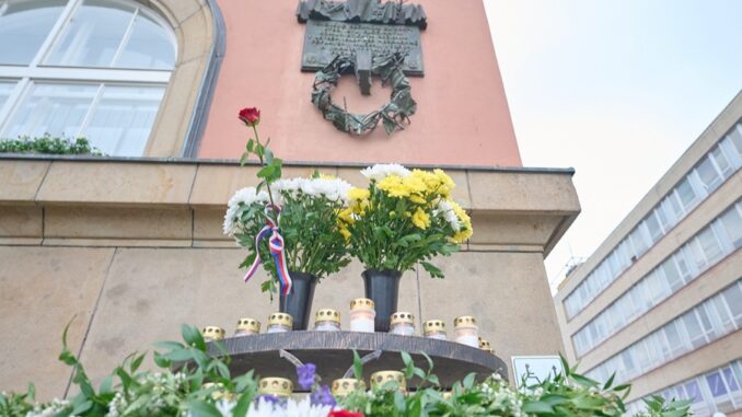 Na pódiu se postupně představí dvě známé zlínské kapely – Cestující hudba a F-Dur Jazzband. Po jejich vystoupení začne v 16.30 pietní akt u pamětní desky na rohu radnice. Promluví zástupci města, kraje, univerzity i studentů. V programu vystoupí také žáci ZUŠ Zlín a pěvecký sbor Gymnázia TGM. Zazní státní hymna, studentská hymna Gaudeamus igitur i Modlitba pro Martu. Čestnou stráž bude držet Skautský institut Zlín.