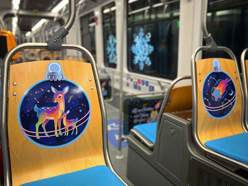 Uvnitř vozu cestující najdou také přehled akcí Ostravských Vánoc, které každoročně přinášejí do města sváteční atmosféru. Součástí programu uvnitř vánoční tramvaje je i letos opět spolupráce s bezpečnostními složkami. Policejní preventisté budou ve voze edukovat na téma bezpečné cestování. „Chtěli jsme tramvaj, která neurazí žádného Ostraváka, bude srozumitelná dětem i teenagerům a zároveň v ní poznáme naše město. Zkombinovali jsme ostravské dominanty s výraznými ilustrovanými vánočními motivy,“ dodal za z grafické studio Glyf Michal Blažek.