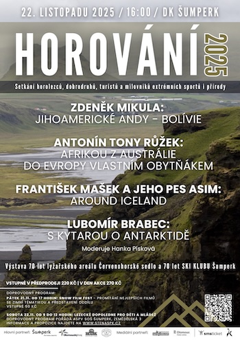 Co: 32. ročník setkání horolezců, dobrodruhů, turistů a milovníků extrémních sportů i přírody. Letos přivítá Čecho – Australana Antonína Tonyho Růžka, který bude sdílet zážitky v rámci svého vystoupení nazvaného Afrikou z Austrálie do Evropy vlastním obytňákem. Domácí barvy na Horování bude letos hájit postřelmovský horolezec Zdeněk Mikula s přednáškou o dobrodružství v jihoamerických Andách a Bolívii. Další hvězdou festivalu bude určitě kameraman František Mašek, který promítne film i fotografie zachycující známá i méně známá místa na Islandu a Faerských ostrovech. Hudebník Lubomír Brabec přiblíží své zážitky z Antarktidy a na závěr festivalu své vystoupení proloží i hrou na kytaru. Součástí festivalu bude také výstava připomínající výročí 70 let SKI KLUBU Šumperk a 70 let lyžařského areálu Červenohorské sedlo.
