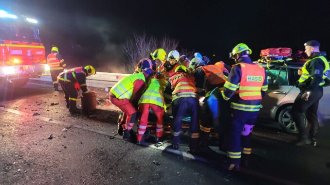 Další vážná zranění utrpěl třiatřicetiletý šofér protijedoucího vozidla a jeho pětadvacetiletá spolujezdkyně. Oba zdravotníci převezli do nemocničního zařízení v Krnově. Na místě zasahovaly všechny složky integrovaného záchranného systému.