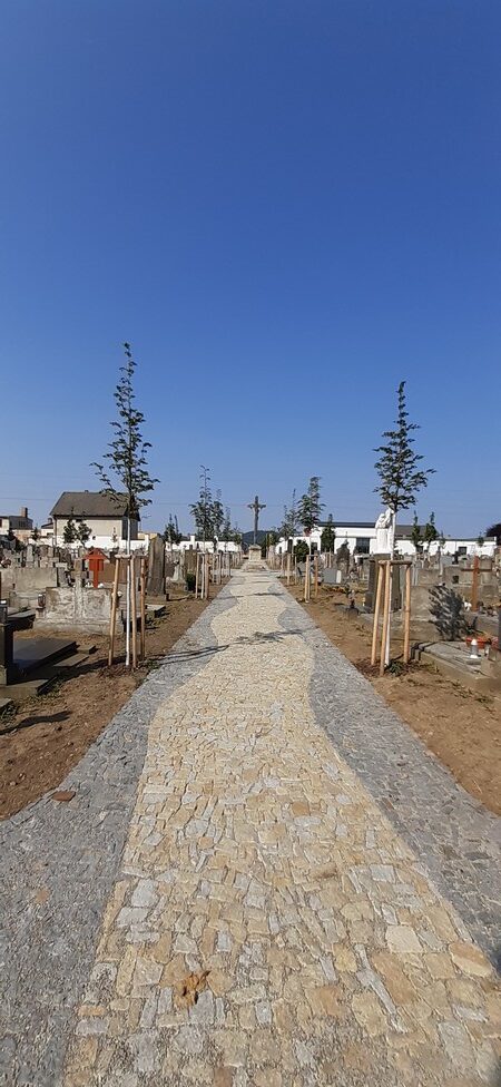 „V tuto chvíli jsou v obou etapách hotové nové chodníky, rozvody elektřiny, je uděláno kompletně nové odvodnění, rozvody vody pro zálivku. Bylo zvoleno ekologické řešení, kdy dešťová voda, která teče do vpustí v chodnících, je sbírána do nádrže a bude moci být dále využívána občany například pro zálivku květin na hrobech,“ upřesňuje Tomáš Baloun ze společnosti Tepis s.r.o. zajišťující pro město Český Krumlov technický dozor nad rekonstrukcí hřbitova. „Z prací na druhé etapě chybí pouze ozelenění. Nové stromy zde budou sázeny až v září nebo v říjnu, protože současné letní počasí sázení neumožňuje, rostliny by nepřežily.“