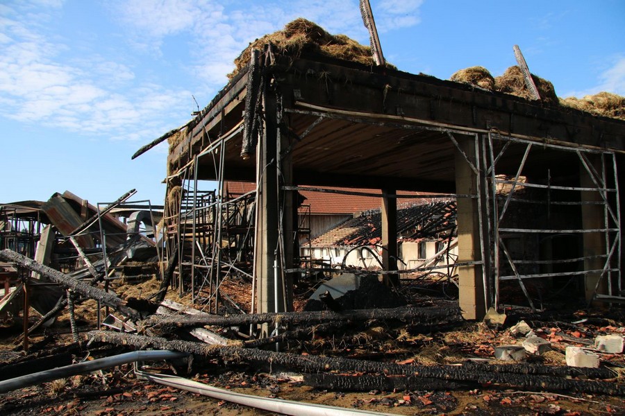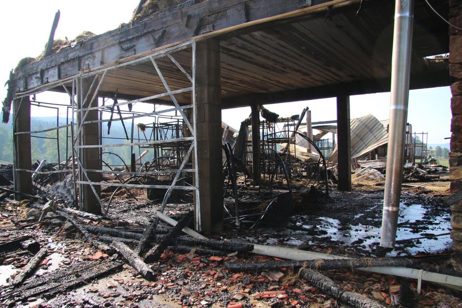Následným požárem došlo ke shoření stodoly, ve které bylo uloženo větší množství palivového dřeva, štěpky, ručně tesané trámy, jasanové kmeny, akátové fošny a také 180 balíků sena. Požárem byly dále zničeny různé pracovní stroje a nářadí, například štípačka za traktor, dva kusy kotoučových pil, lis na balíky, zemědělská radlice, malý traktůrek, ale také 30 kusů solárních panelů či starožitné tažné saně za koně a starožitný tažný vůz. Požár částečně zasáhl také přilehlé stáje. Předběžně vyčíslená škoda je podle informací policie odhadována na více jak sedm milionů korun. Přesná výše škody bude známa až po vypracování znaleckého posudku.