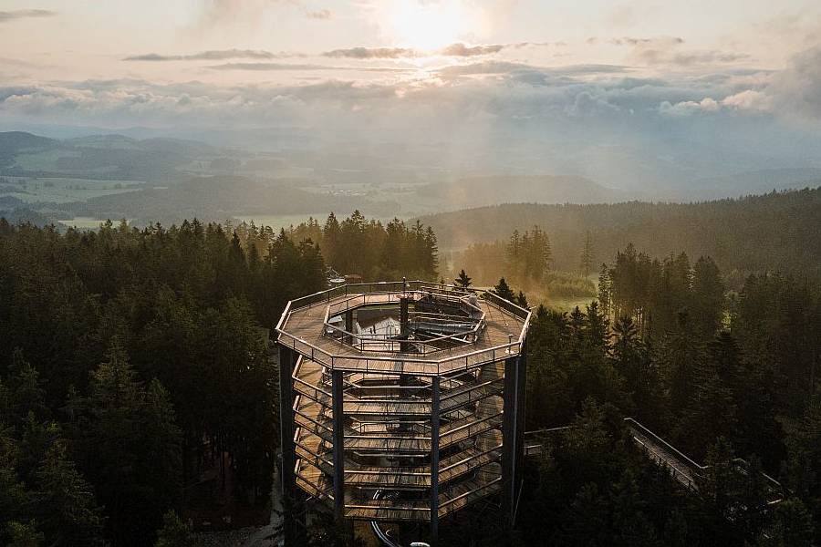 Po vydatném jídle by to chtělo i aktivní pohyb a kam jinam v Lipně vyrazit než na ikonickou Stezku korunami stromů. Tu uvidíte hned, jak pohodlně zaparkujete na velkém parkovišti P1. Jde o vůbec první Stezku postavenou v České republice. Umožní Vám prozkoumat krásu šumavské přírody i krajiny z nové perspektivy. Užijete si panoramatické výhledy na jezero Lipno a při dobré viditelnosti dohlédnete až na Alpy. Po cestě nahoru můžete vyzkoušet svoji odvahu na adrenalinových zastávkách, nebo se projít po adrenalinové síti ve skoro třiceti metrech nad zemí. Ze čtyřicetimetrové věže se můžete kochat každý den od 10:00 do 16:00.