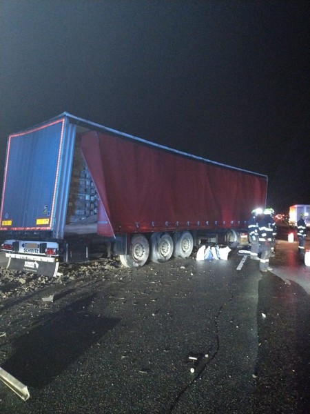 Převrácený kamion blokuje oba jízdní pruhy. „V opačném směru zasahují úlomky kamionu do rychlého pruhu, takže na Prahu se v současné době jezdí jedním pruhem. Příčinu dopravní nehody zjišťujeme,“ dodal Šupík.
