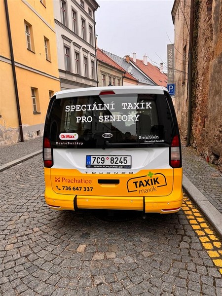 Taxík Maxík poskytuje dopravu speciálně upraveným vozem i pro vozíčkáře a je určena pro potřeby seniorů a osob se zdravotním postižením. Díky Nadaci Charty 77 / Konta bariéry město získalo 500 000 korun na nákup a přestavbu vozu.