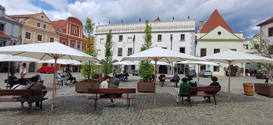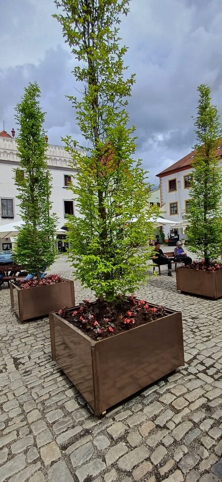 To se nyní změnilo, před začátkem letní sezony tam k lavičkám přibyly slunečníky a květináče se vzrostlými stromy. „Toto moderní vybavení proměnilo tvář historického náměstí, dodalo mu na útulnosti,“ vítá proměnu starosta Alexandr Nogrády.