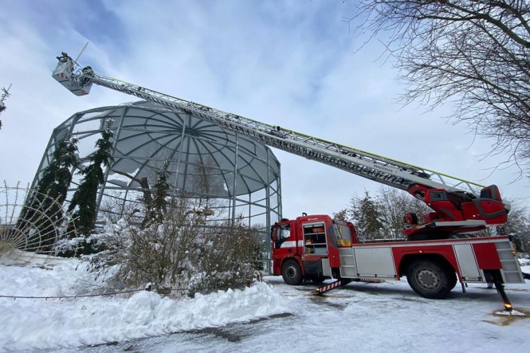 Hasiči pomáhali s odstraněním sněhu z voliéry pro orly v Zoo na Hluboké