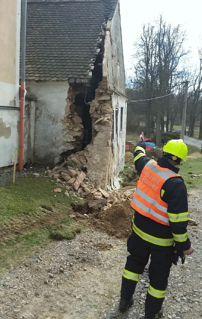 Ve čtvrtek v místní části Mešovice obce Uherčice na Znojemsku praskla štítová zeď domu a hrozilo zřícení domu. Obyvatelé Mešovic volali hasiče. Po příjezdu hasiči zabezpečili místo a povolali statika. Ten rozhodl, že se štítová zeď musí zabezpečit. U události zasahovali profesionální hasiči ze Znojma, z brněnských stanic Lidická a Líšeň specializované na podobné zásahy společně se stanicí Jemnice z Vysočiny. „Celé odpoledne jsme zabezpečovali štítovou stěnu domu před zřícením pomocí výdřevy. Po devatenácté hodině jsme zásah na místě ukončili. Událost se obešla bez zranění,“ popsal zásah mluvčí hasičů Jan Dvořák. Podle svědků praskl dům proto, že jeho blízkosti pracovali dělníci z firmy EG.D., a.s. na výkopech. Podle ní došlo vlivem podmáčeného a nestabilního podloží k prasknutí části štítové zdi staršího neobydleného domu. Podílely se na tom i nedostatečné základy budovy. V současnosti je budova zabezpečená a neohrožuje okolí.