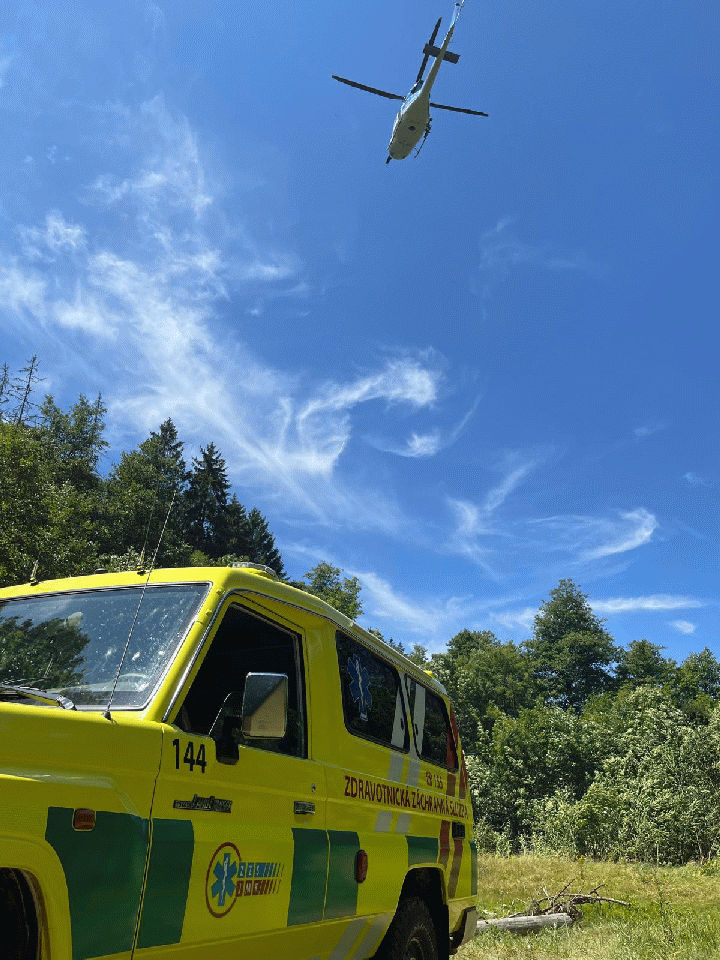 Po telefonátu na tísňovou linku vyslalo operační středisko záchranářů na místo vrtulník, speciální sanitku do terénu a pozemní lékařskou posádku. Jak uvedla mluvčí záchranářů Michaela Bothová, letecký tým přistál na mýtině, kde na něj mával svědek události. Pacient byl od tohoto místa vzdálen přibližně kilometr. Zdravotníci se vydali na místo pěšky. „Pacienta následně ošetřili, poskytli léky na tišení bolesti a chlapce zafixovali, jednalo se o podezření na poranění páteře. Mezitím dorazil na místo i terénní vůz, díky kterému mohly být použity další pomůcky a také bylo k dispozici lepší spojení s dispečinkem a ostatními složkami IZS. Manipulace s pacientem a jeho následný transport vyžadoval vzhledem k předběžné diagnóze mimořádnou opatrnost. Proto naše operační středisko požádalo o pomoc kolegy hasiče, kteří poskytli vrtulník s palubním jeřábem. Ten nám pomohl zajištěného pacienta za doprovodu jednoho z našich záchranářů transportovat k našemu vrtulníku, který pak zraněného chlapce předal do brněnské Dětské nemocnice k další péči,“ popsala zásah Bothová. Podle hasičů celá akce od přijetí oznámení po transport zraněného na palubu vrtulníku letecké záchranné služby netrvala ani hodinu.