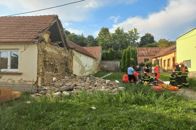 Při pádu štítové zdi rodinného domu v obci Letonice na Vyškovsku se zranil jeden člověk, kterého zasypala. Na místě zasahovalo pět hasičských jednotek. Muže se podařilo vyprostit před příjezdem jednotek. Na místo byl povolán statik. V 7 hodin dorazil na místo kontejner s výdřevou a kontejner stabilizace z Brna a Vyškova. Hasiči začali dům stabilizovat.