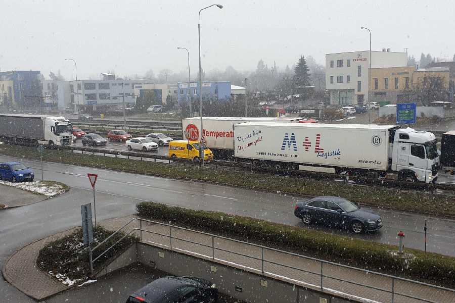 Velkou kolonu od 184,5. kilometru dálnice D1 u Popůvek ve směru na Prahu až na Vídeňskou ulici v Brně zavinila dopravní nehoda kamionu. Na kluzké vozovce dostal kamion smyk a skončil převrácený v příkopu. Nehoda byla bez zranění. „Zajistili jsme místo nehody, provedli protipožární opatření a vyprostili jsme nezraněného řidiče z nákladního auta,“ uvedli hasiči na své stránce.