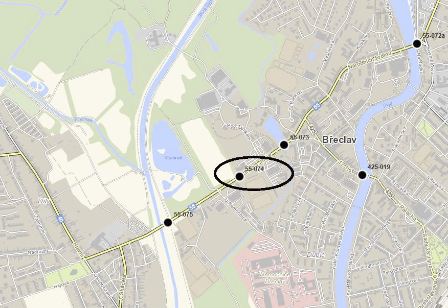 Další víkendovou lokální opravu plánuje ŘSD v Břeclavi na silnici I/55 na třídě 1. máje během víkendu od 14. do 16. června. Opraví tam výtluky a výškově pokleslé předpolí mostu viz mapka níže. Provoz bude veden kyvadlově a řídit ho dle potřeby budou semafory či pracovníci s vysílačkami. ŘSD děkuje za trpělivost.