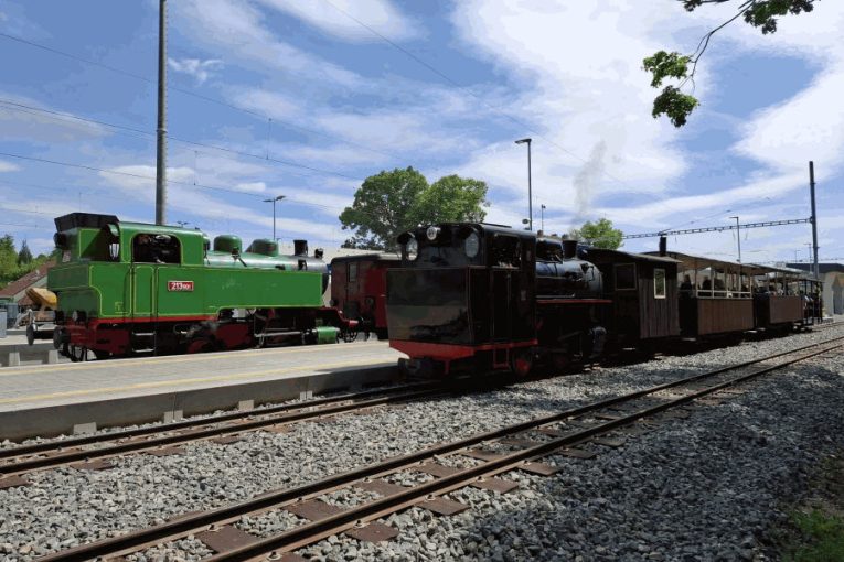 - 10:00 hod. odjezd vlaku taženého parními lokomotivami ze Zbýšova do úzkorozchodného nádraží Zastávka u Brna (příjezd do Zastávky u Brna v cca 10:20 hod.).