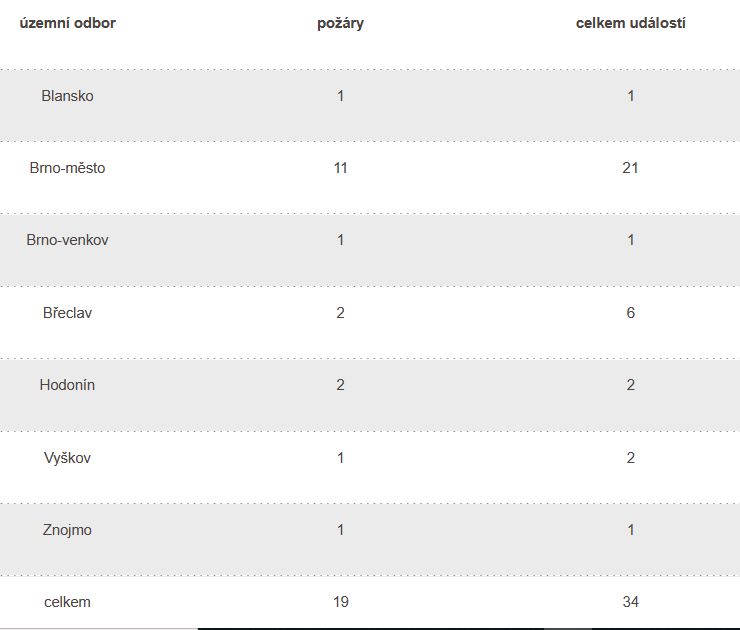 Během středečního odpoledne vyjížděly jednotky do Vranova u Brna, kde hořela dvě auta zaparkovaná pod dřevěným přístřeškem. V době příjezdu první jednotky byl požár již v plném rozsahu a ohrožoval blízký rodinný dům. Hasiči proti plamenům nasadili celkem tři vodní proudy a požár tak dostali pod kontrolu asi za dvacet minut. „Vyšetřovatel odhadl předběžně škodu na 1,6 milionů. Hasiči svým zásahem uchránili hodnoty za 5 milionů korun,” uvedl mluvčí hasičů Filip Venclovský.