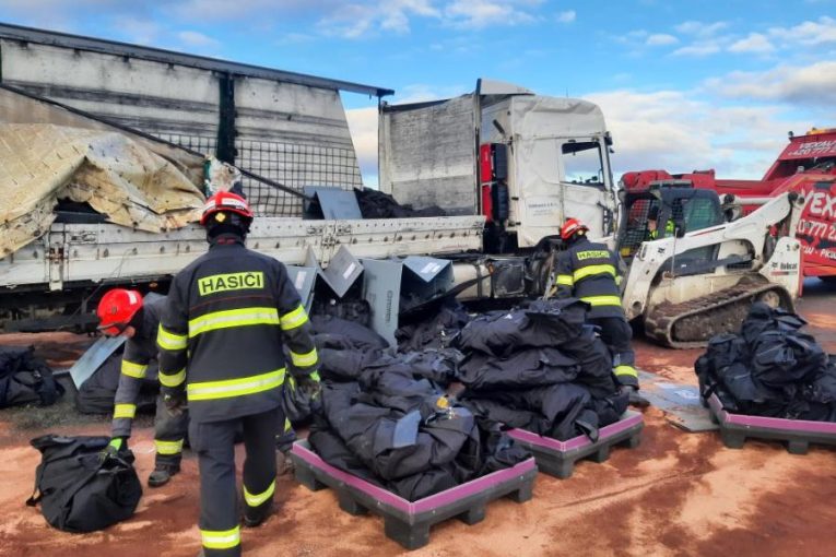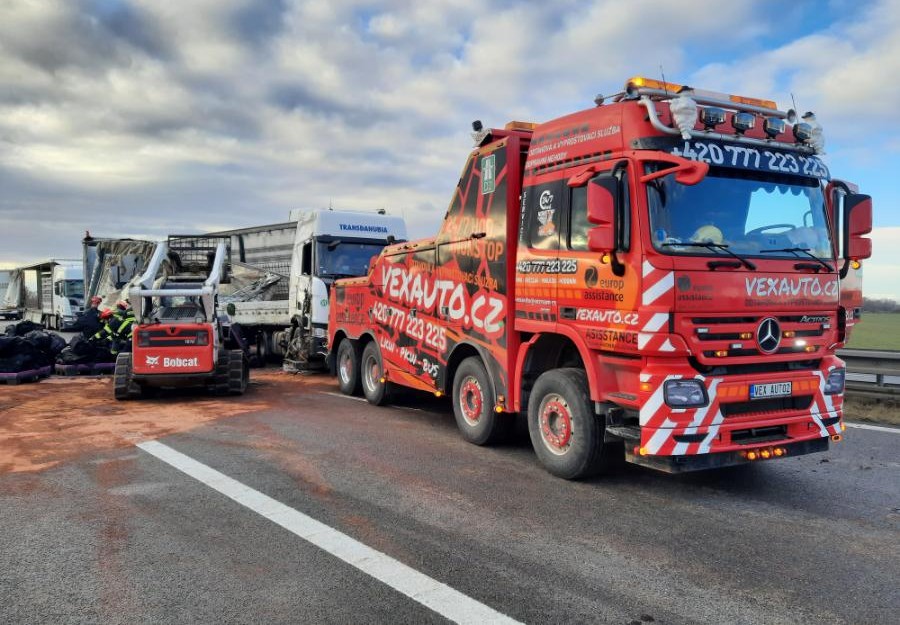 Souprava byla plně naložená automobilovými součástkami, část nákladu se vysypala na silnici. Z kamionu také unikly na vozovku provozní kapaliny. Policistům se podařilo otočit ta osobní auta, která uvízla za havarovaným kamionem, aby mohla odjet. Kamiony zůstaly za místem nehody a jejich řidiči museli čekat na znovuotevření dálnice.