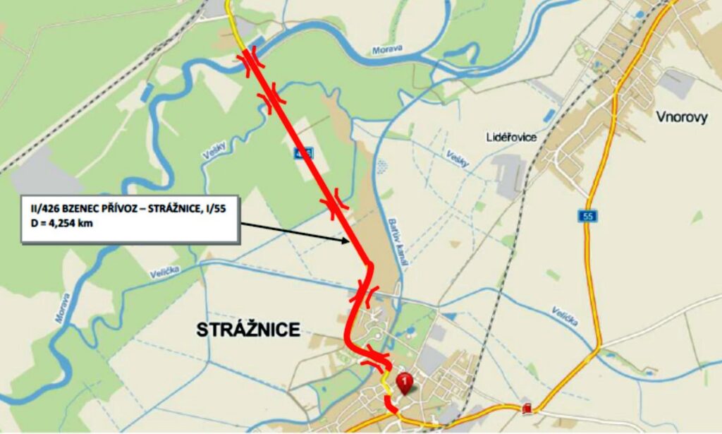 Ve Vnorovech a v Zarazicích se bude opravovat hlavní silnice I/55