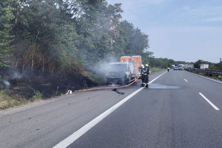 Na dálnici D2 poblíž Hustopečí hořelo auto