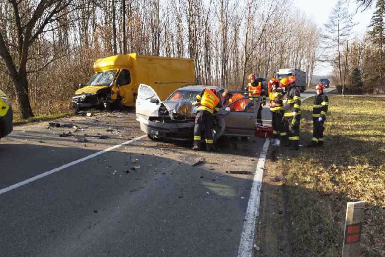 Srážka osobního auta a dodávky u Velkých Němčic: Hasiči museli vyprostit těžce zraněného