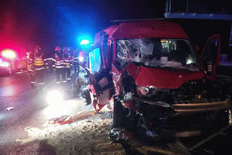 Po srážce dodávky a kamionu na D2 u Velkých Pavlovic hasiči vyprostili dvě zraněné