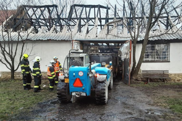 VIDEO: Při požáru přístavku v Hruškách hořely historické motorky a traktor